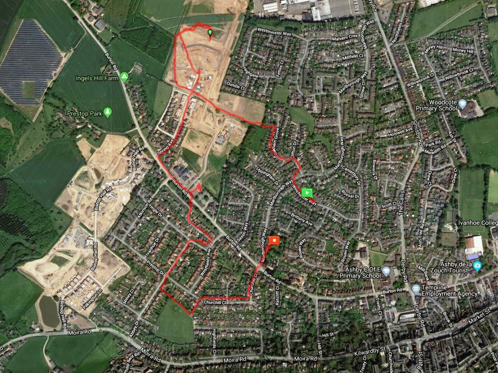 Photos by John Howlett and John DoghertyThe day broke dry but overcast and 13 members of the U3A set off from Hood Park gates into Hood Park along the main track before turning left into a footpath up to Smisby Road by the corner shop. We crossed the road into Rotherwood Drive and along the footpath into the Bovis estate, then followed Canterbury Drive to Marlborough Way and on to Oakham Grove taking the footpath across into the Davidson estate. Here we turned left down to the traffic lights on Burton Road where we turned right and crossed the road to take the footpath just beyond the lights into the Bellway estate. We continued down the road when the footpath finished until we reached the main footpath between Ashby and Blackfordby. We took the footpath back into town past the Westfields recreation ground and Highfields Close onto Kilwardby Street and down into the town centre. Total distance 2 1/4 miles.