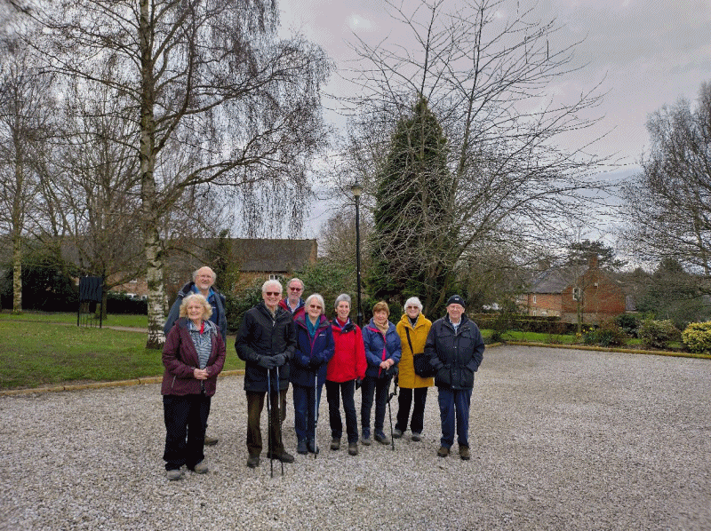 Photos by Margaret HowlettA good turn out of 13 walkers and a dog met at the gates to Hood Park on North St on a dry but grey morning. We set off on the dot of 10am along The Mews, then through the alley just to the left of The Lamb and onto South St. Turning left, we headed up to St Helen's churchyard. At which point, the walk leader got a phone call from two more walkers who had mistaken the meeting point as gates further up North St and wanted to know where we were. We continued up through the churchyard at a gentle pace and turned right along Mount Walk. A pause at the far end allowed them to catch up with us. And then we were 15. Our route then took us down Prior Park Lane and into Bath Grounds where we followed the path round to the exit onto South St. From there we bore left onto Station Rd, crossed over into Wilfred Place, on into Wilfred Gardens and onto the path through the allotments at the far end. There were just a few hardy souls preparing their plots for spring planting. From there we turned off to walk through the cemetery, coming out by the water tower and walking down Kilwardby St into Market St and finishing up back in The Mews at the Lil Bo's cafe for hot drinks and cake. A pleasant walk of just over 2 miles.