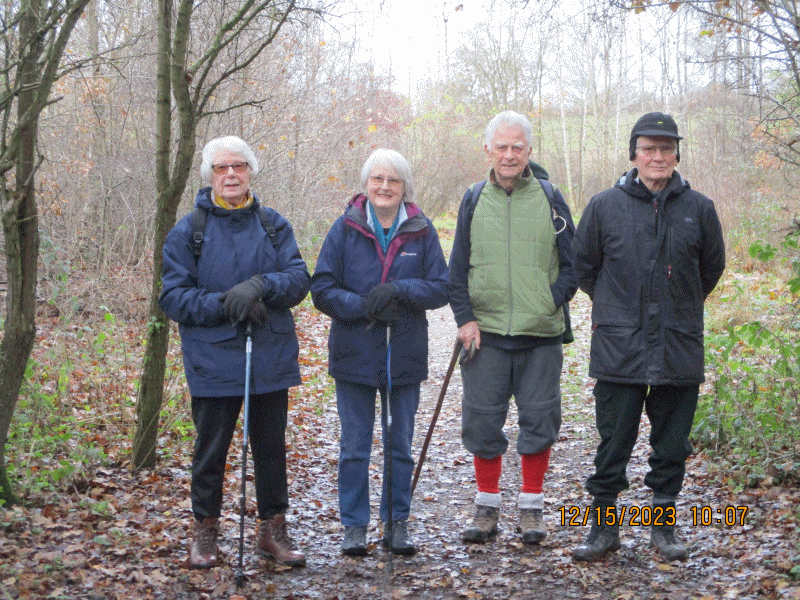 Photos by John DoghertyThe weather was unexpectedly dry when seven stalwarts and one dog assembled in the bottom car park at Staunton Harold Nurseries. We were joined by a very new member: Denise.