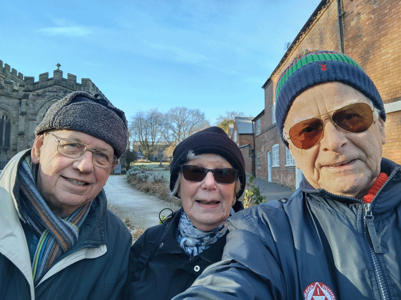 Photos by John D.A beautiful crisp cold day for three short walkers to walk around Ashby. We set off along the mews to Market street which we crossed and took the path by the lamb inn to North Street. Turned left and up to St Helen's church we spent some time looking at the graves before taking the path by the castle, Mount walk, and hence down prior park lane. we crossed into bath grounds. We followed the path around as far as the cricket pavilion and out onto Station road. We crossed the road to th old station approach and took the footpath through the bungalows to Pithiviers close and Wilfred Gardens. This leads to the Alottments. After the alottments we walked through the graveyard onto Kilwardby street. Back in town we chose to go to the Lounge restaurant for coffee and toasted teacake. The place was busy but we were served quickly in John's case it arrived before he got back from the bar where he placed the order.