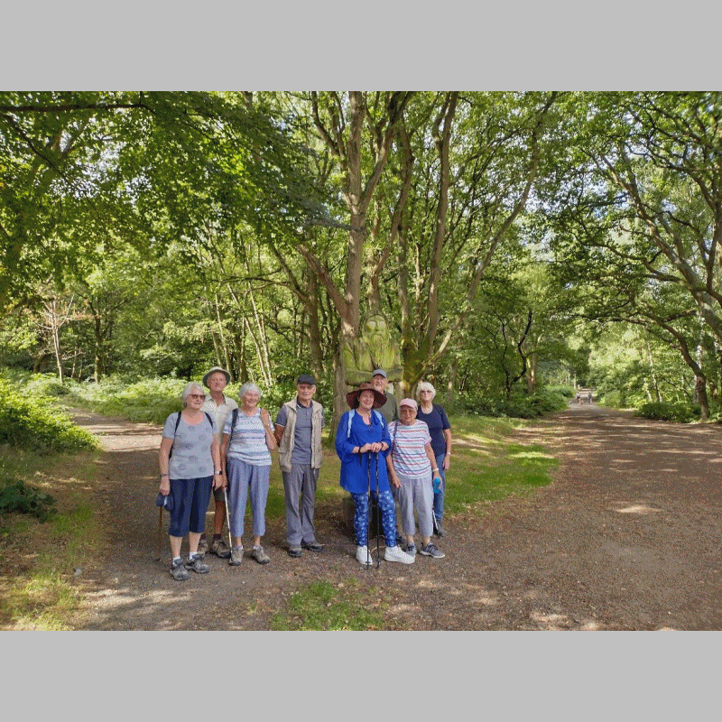 Four people met at the car park and at 10 o'clock set off via the climbing boulder around to the main pathway leading in a straight line across the road that cuts through the woodlands. The path crosses the bridges over a wetland area and stopped to admire a sculpture map of the woodland area. We were shortly confronted by a fork in the path and took the right hand fork around to a lake. This was very quiet with only one water bird swimming in the lake. We continued on returning to the sculpture rock by the other path. We recrossed the road and when on the long straight path we took the first path on the left where we took 2 photos of threesomes with 2 walkers appearing in both. We took the next path on the right and followed the path to the road. The road took us back to the car park where we met 2 walkers who were too late to join the main group. We all went to Morrisons for a drink and a cake. Total distance about 1.5 miles.